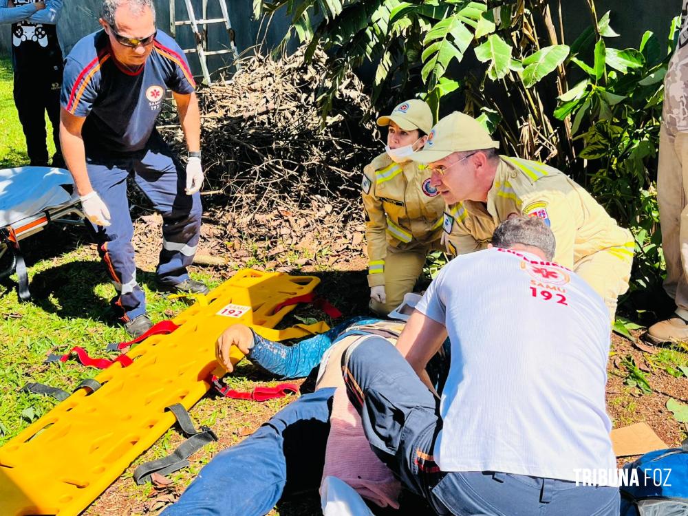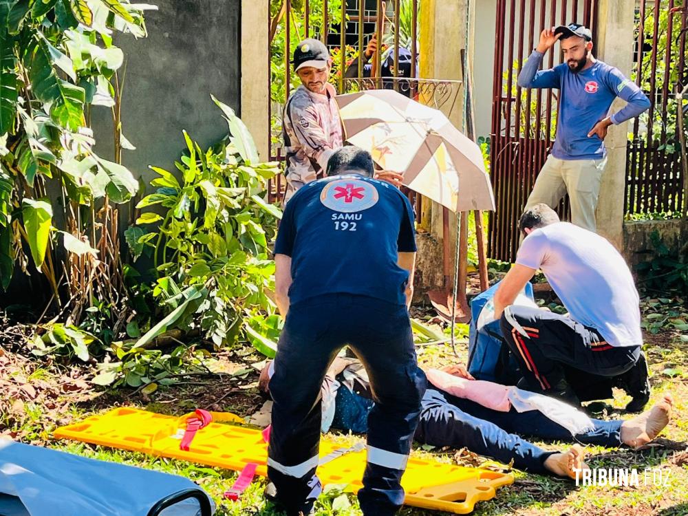 Na manhã desta segunda-feira, 03 de novembro de 2025, uma equipe de socorristas do Siate de Foz do Iguaçu, com o apoio de uma equipe do SAMU, foi acionada para deslocar até a Rua Uraí, no Jardim São Roque, região do Bairro Copacabana, em Foz do Iguaçu, para atenderem a uma vítima de queda de plano elevado.