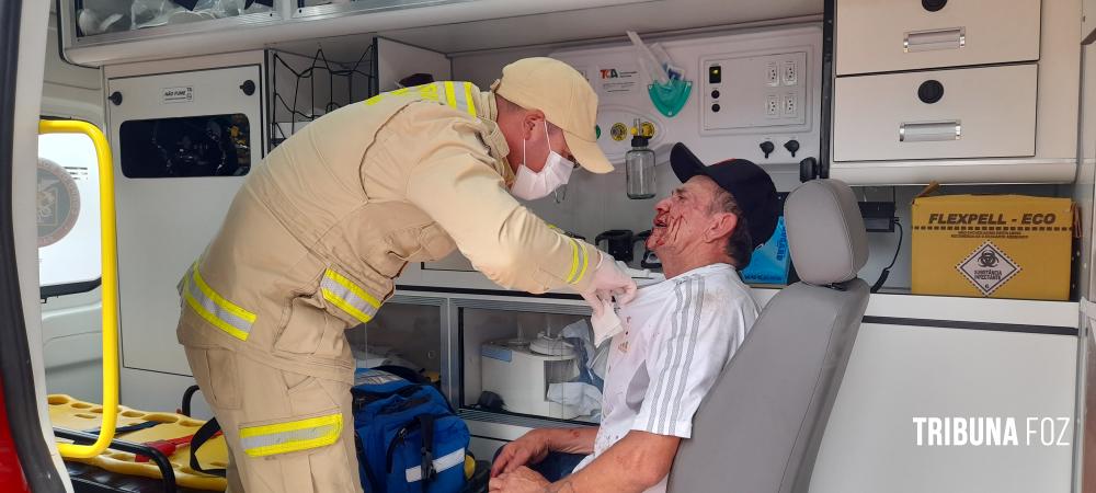 No local foi socorrido Gildivan Alves Cabral, de 50 anos de idade, qual apresentava ferimentos na face e cabeça.