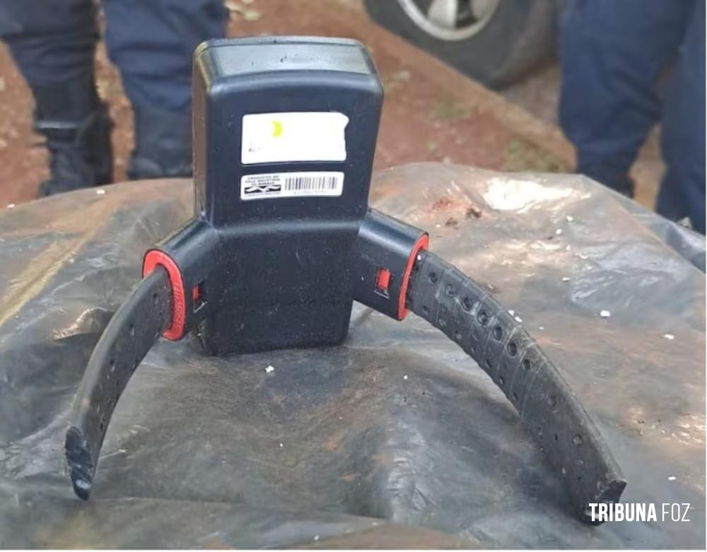 Uma tornozeleira eletrônica foi encontrada na manhã deste domingo, 07 de dezembro de 2025, em um terreno baldio em Ciudad del Este, no Paraguai. Trata-se de uma tornozeleira da marca Spacecom, número de série 4315023838, de cor preta, com tela perfurada, utilizada por pessoas em prisão domiciliar.