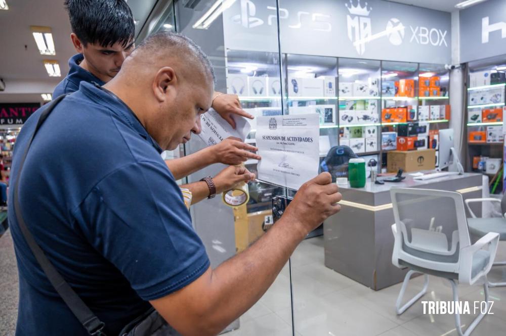 Três locais comerciais localizados no Shopping Alfonso em Ciudad Del Este, no Paraguai foram lacradas durante uma operação de controle realizada pela Divisão de Fiscalização do Município de Ciudad del Este na região central da cidade.