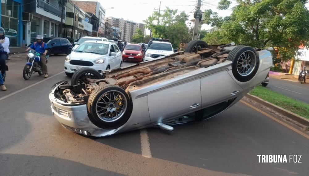 Veiculo capota após acidente de trânsito em Ciudad Del Este