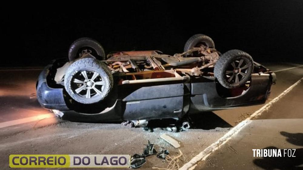 Um veículo capotou na madrugada de ontem, domingo 19 de abril de 2026, na Rodovia Estadual PR-495, no trecho entre Pato Bragado e Entre Rios do Oeste/PR.