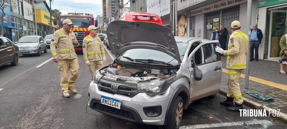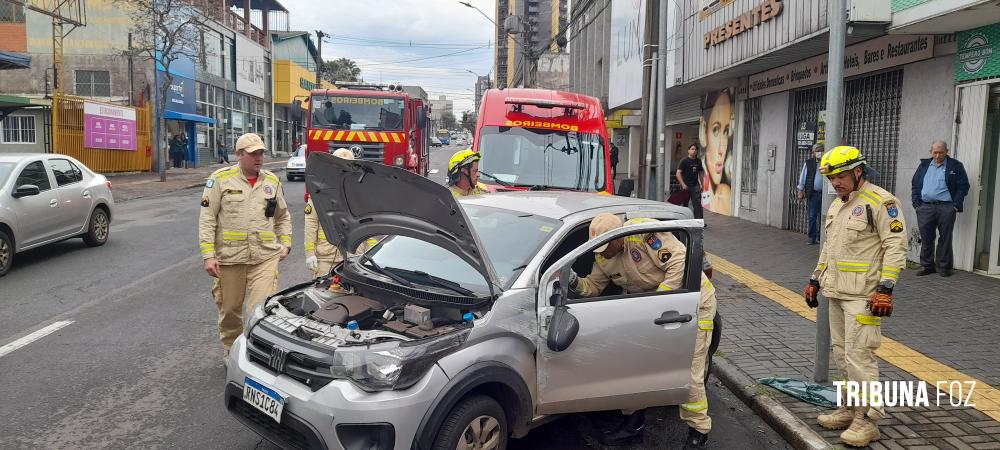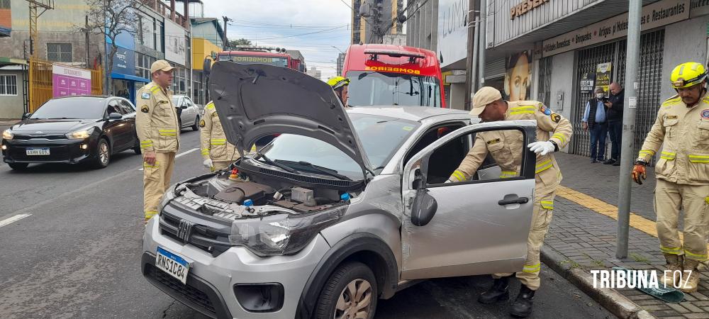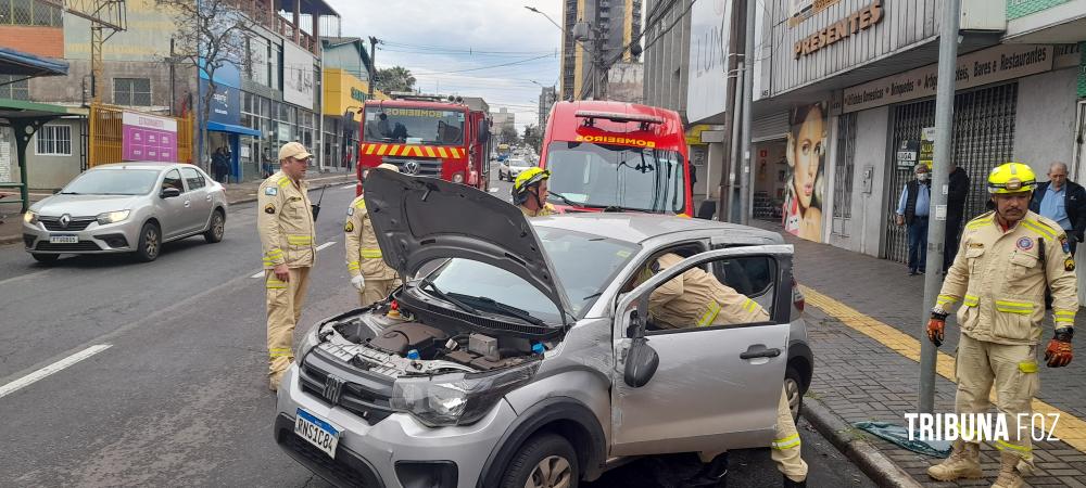 Veiculo tomba após colisão no centro de Foz do Iguaçu